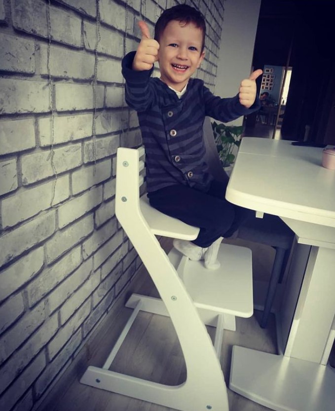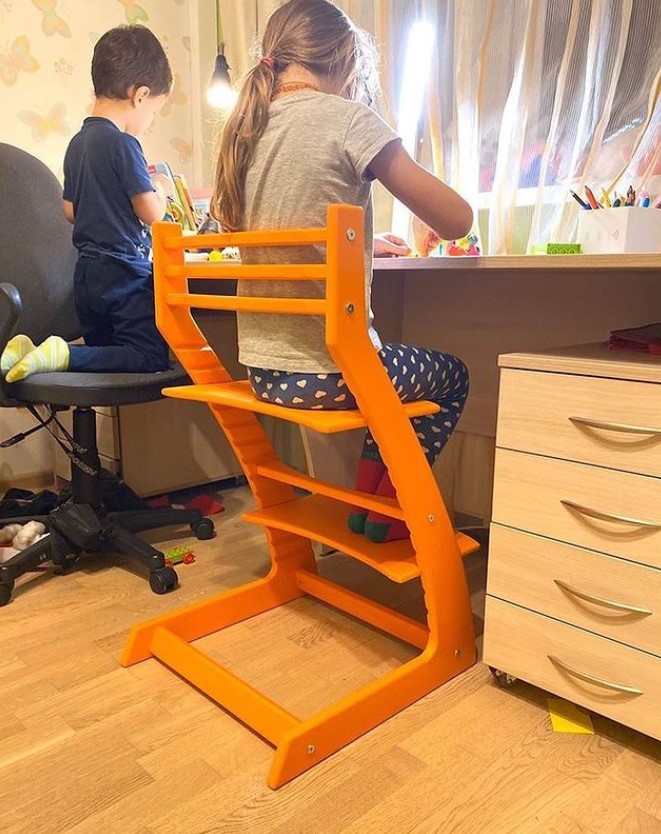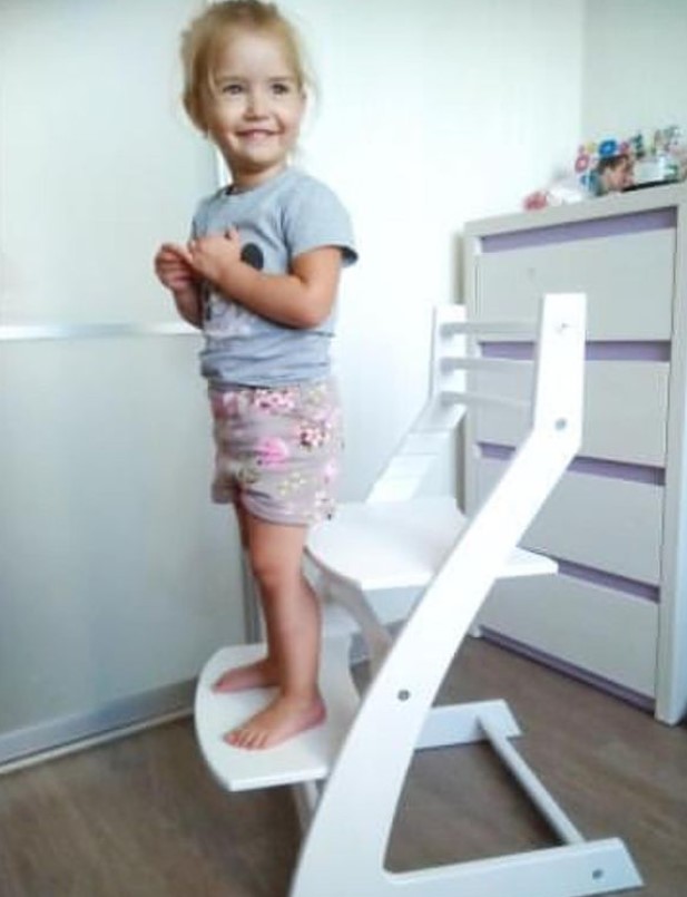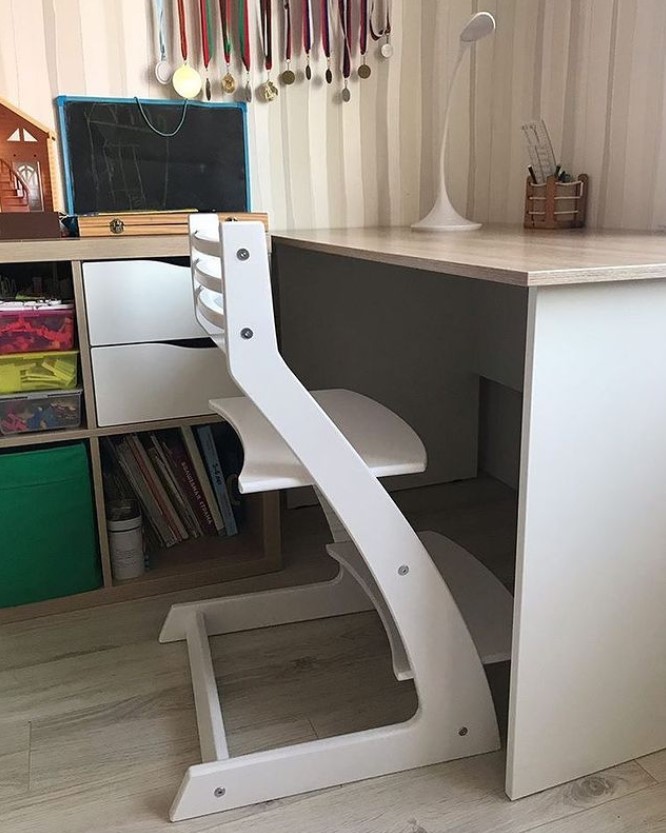 Данный стульчик является аналогом шведского стула отстоки. Который успешно производится и продается не одно десятилетие. Почему же он такой удачный? Дело в том, что он один из немногих дает возможность ребенку сидеть за взрослым столом. При этом самому ребенку удобно и он сохраняет правильную осанку. Процесс сборки растущего стула довольно прост.