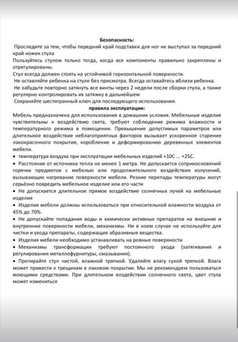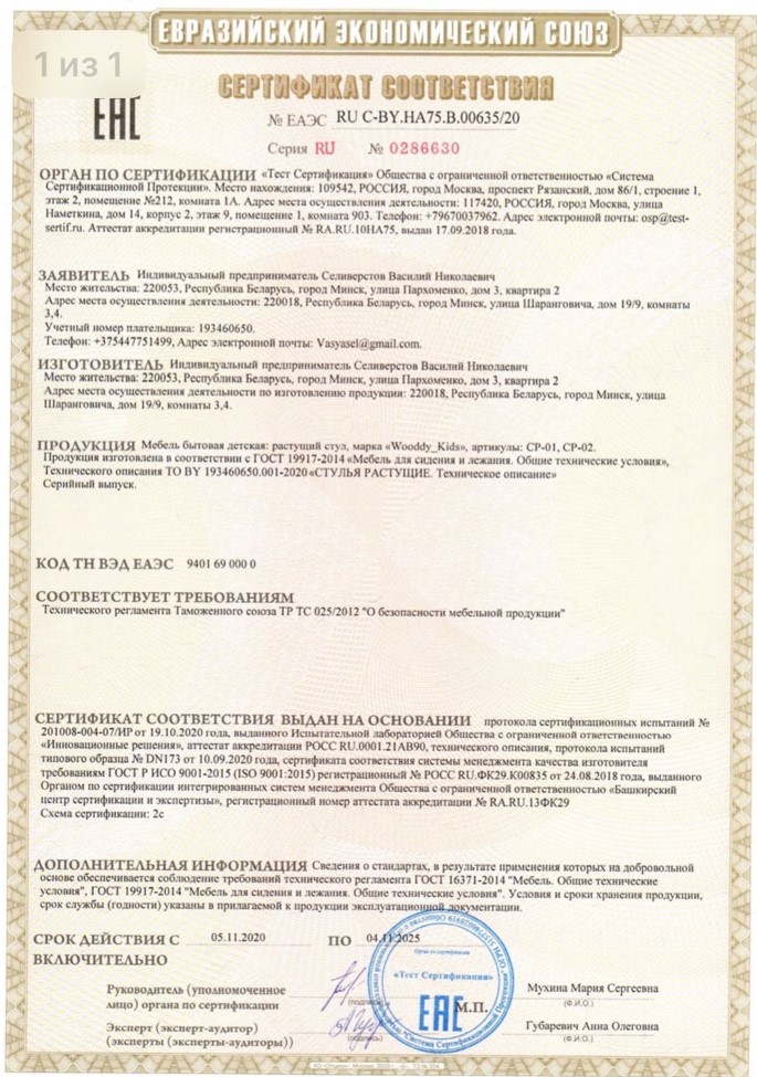 Наши стулья покрыты акриловым мебельным лаком итальянского производства. Покрытие безвредно для ребенка и защищает стул от износа, что увеличивает срок его службы