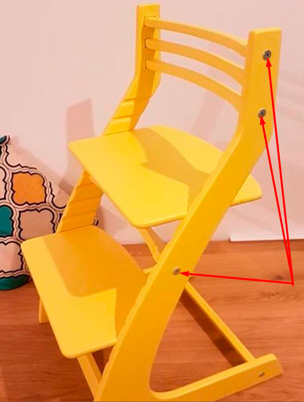 Это позволяет собирать и разбирать стул неограниченное количество раз. При этом стул не расшатывается со временем
